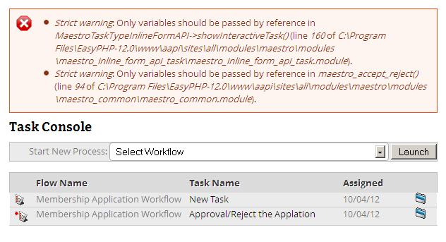 For example, if I want to lauch my membership application workflow, I would need to get to the task console link and initiate the workflow over here.